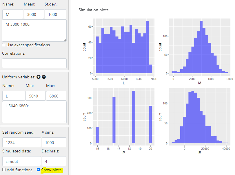 - #sims : 시뮬레이션 횟수
